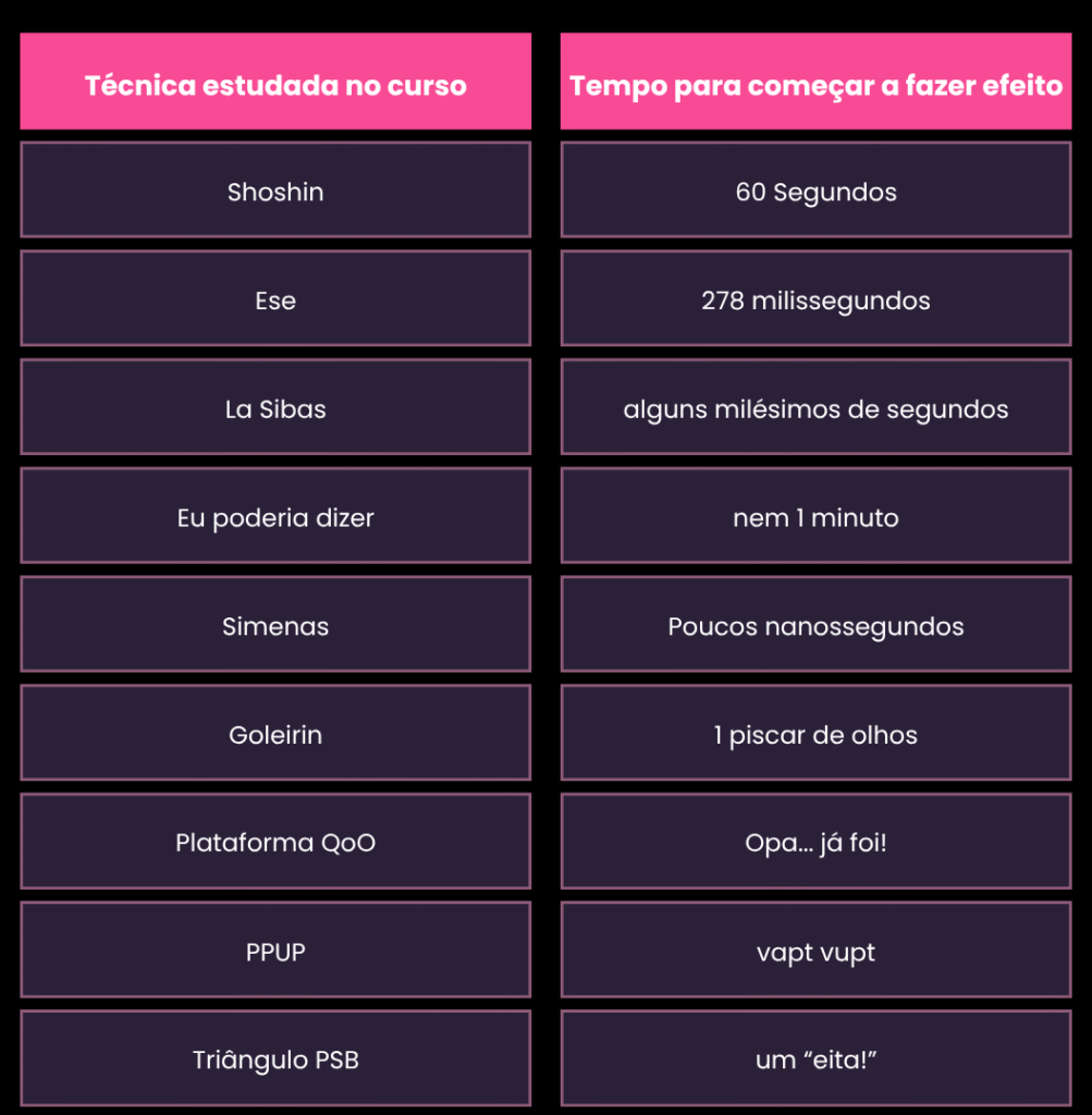 Se você tem urgência para sentir na pele os resultados, veja o tempo estimado para aplicar algumas ferramentas abordadas no curso